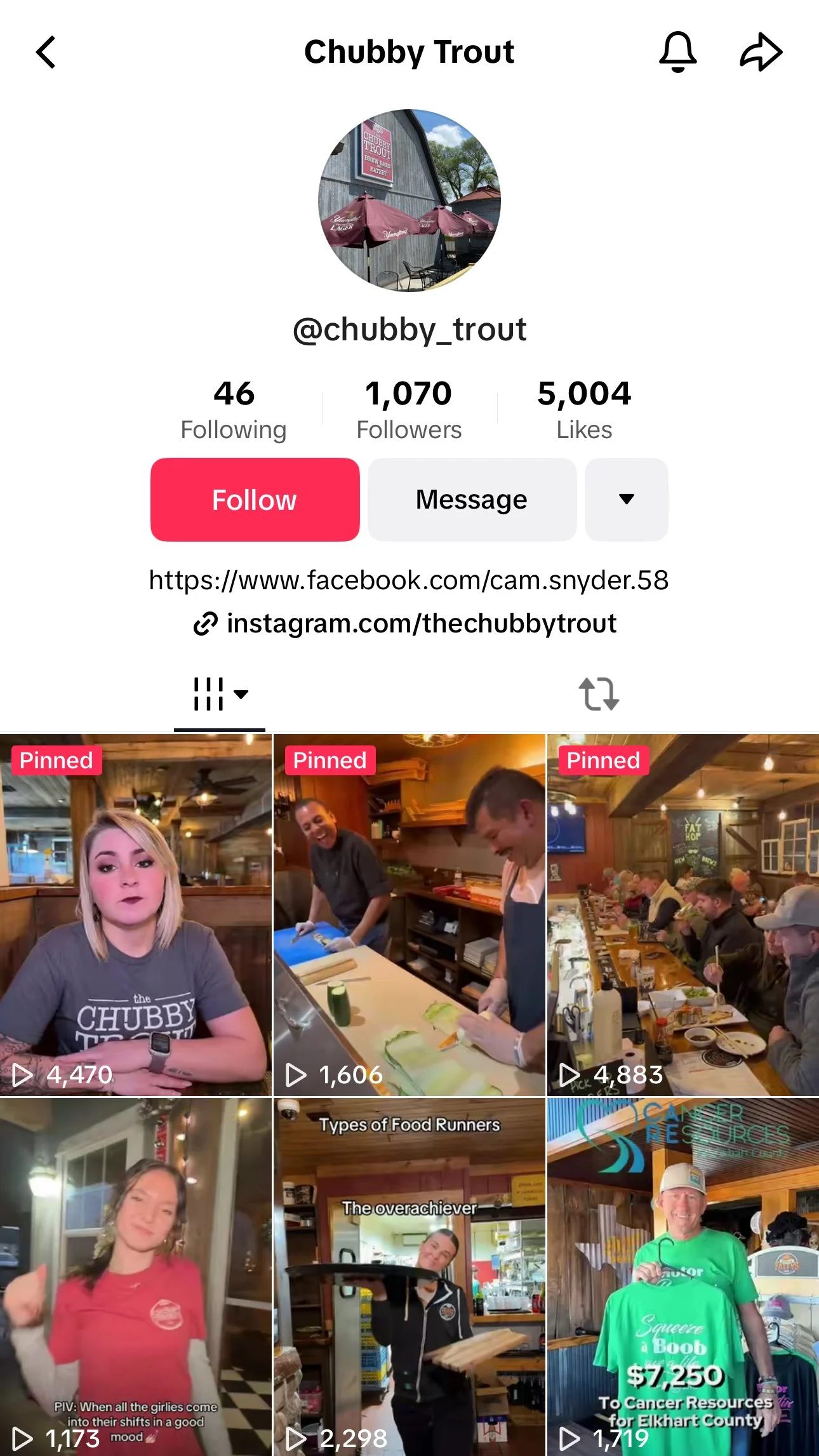Elkhart’s Chubby Trout is a restaurant nestled in a historic barn that brews their own beer, and serves smoked meats, fresh seafood, and sushi. With Chubby Trout, I proactively handled content planning 7 days a week/3 posts per day for Facebook and Instagram. 1 post per day on LinkedIn, and weekly on TikTok.